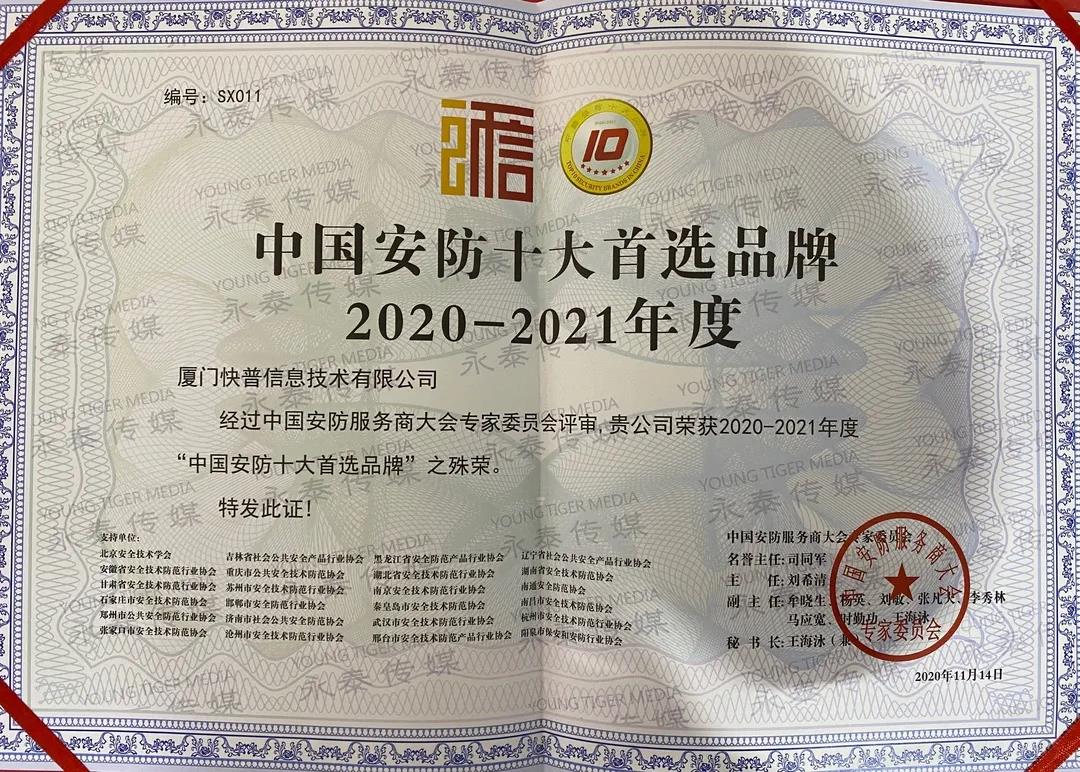 快普榮獲:“中國安防十大品牌”