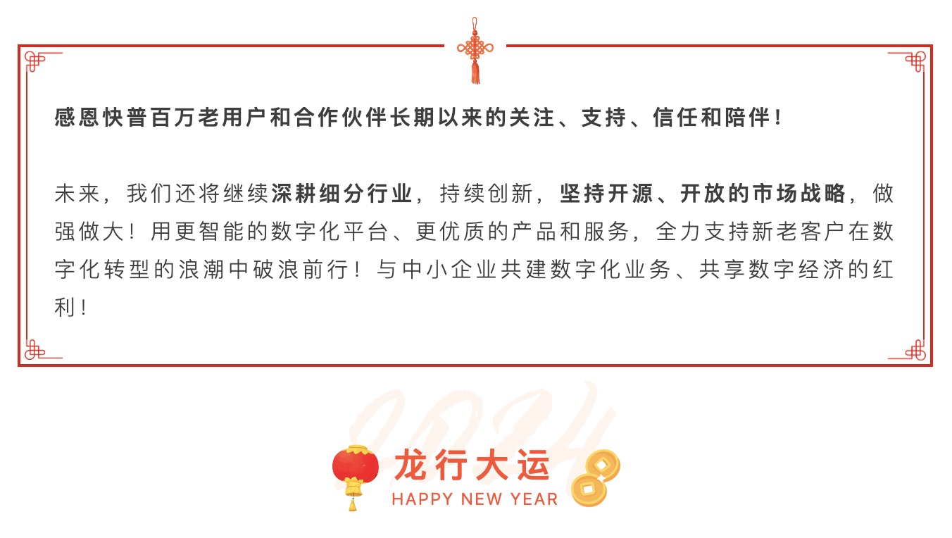 2023年是快普銳意改革、開拓進(jìn)取的一年。面對機(jī)遇和挑戰(zhàn),我們苦練內(nèi)功,加大研發(fā)投入,積極擁抱市場,通過新一代“易”系列產(chǎn)品,幫助大量企業(yè)成功實(shí)現(xiàn)數(shù)字化的轉(zhuǎn)型升級,賦能企業(yè)邁向高質(zhì)量發(fā)展!同時,快普也實(shí)現(xiàn)了自身的逆勢增長,多項(xiàng)科技創(chuàng)新成果獲得了政府的嘉獎與社會各界的好評!2024年,我們不忘初心,堅守“數(shù)字化平臺服務(wù)商”的使命,1月份再創(chuàng)多項(xiàng)佳績!